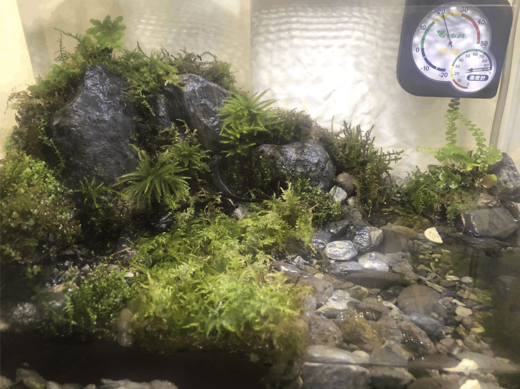 イモリウムの水槽立ち上げ&イモリの飼育を始めて1ヶ月ぐらいが経ちました。立ち上げから多少レイアウトの改修を繰り返しつつようやく最終形に近づいてきたように思います。生体も2匹とも元気です。
