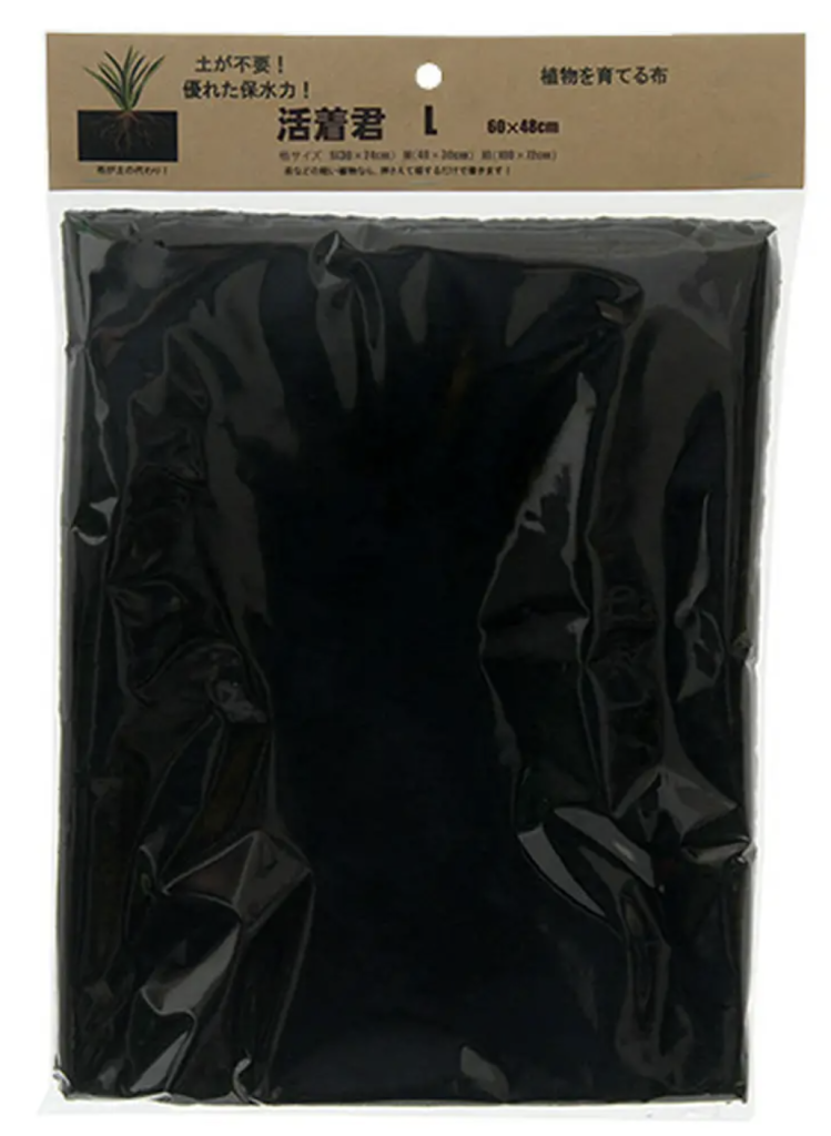 この活着君。ざっくり言うと「布」です。特徴としては表面が非常に毛羽立っており細かいものや小さいものが引っかかりやすい構造になっています。また布であるため水が沁みやすく(浸透しやすく)、かつ少し厚手の生地のため保水力もある素材です。