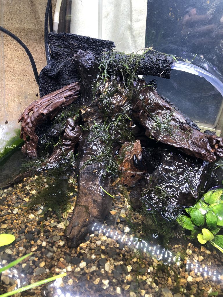 だとすると、活着君の表面の毛羽立ちはバクテリアが住処を作るのにも最適で、水のろ過にも役立っているはずです。今回のレイアウトでは限定的だった活着君の水中での活用ですが次の立ち上げではもっと大胆に使って見ようと思っています。